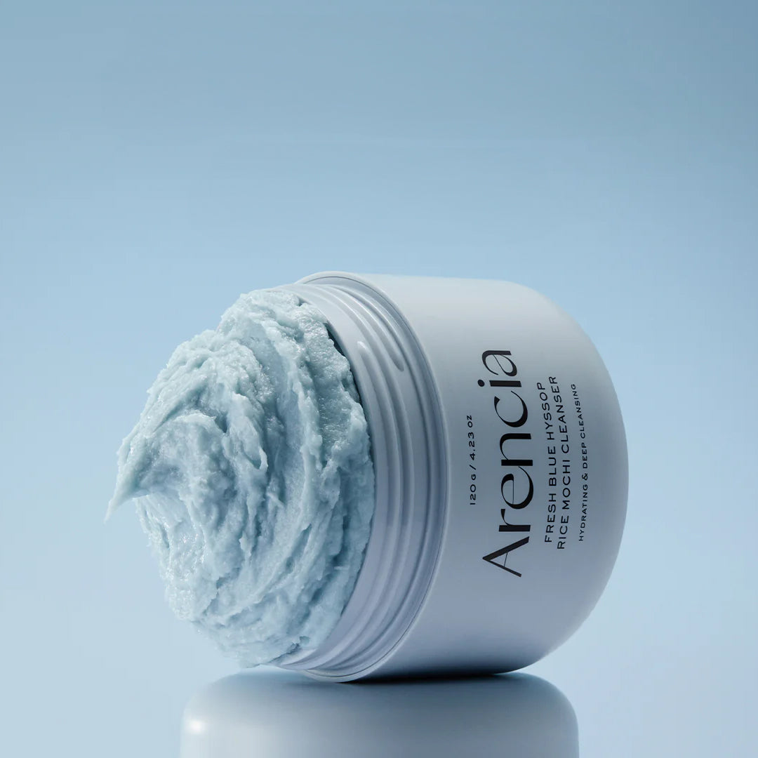 ARENCIA Fresh Blue Hyssop Rice Mochi Cleanser veido prausiklis – švelnios, kreminės „mochi“ tekstūros korėjietiškas veido prausiklis, skirtas kasdieniam valymui ir gaivos pojūčiui. Formulė su ryžių pudra ir izopo (hyssop) ekstraktu padeda kruopščiai pašalinti nešvarumus, o smulki ryžių pudra suteikia lengvą mechaninio šveitimo efektą, todėl oda atrodo glotnesnė. Švelnūs augalinės kilmės grūdeliai valo nebraižydami, glicerinas palaiko odos drėgmės balansą, o kaolinas padeda sugerti riebalų perteklių ir mažinti blizgesį. Papildomi saldžiųjų migdolų sėklų, žaliosios arbatos lapų ir gardenijos vaisių ekstraktai prisideda prie komforto ir švelnumo. Dėl gardenijos ekstrakto prausiklis įgauna subtilų melsvą atspalvį.