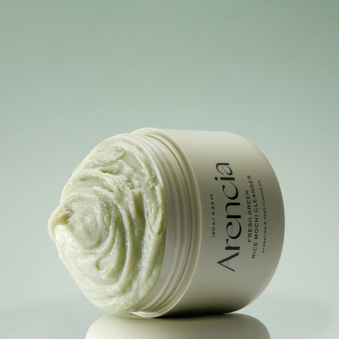 Arencia Fresh Green Rice Mochi Cleanser - inovatyvus, švelnios „mochi“ tekstūros veido prausiklis. Minkšta, puri puta giliai valo poras, pašalina nešvarumus, makiažo likučius ir riebalų perteklių, tačiau nepažeidžia odos barjero – todėl puikiai tinka net jautriai ar į išsausėjimą linkusiai odai. Formulėje derinami fermentuoti ryžių ekstraktai, padedantys skaistinti ir šviesinti odą bei švelninti tekstūrą, ir žalioji arbata su antioksidaciniu poveikiu, kuri ramina, mažina sudirgimą ir padeda palaikyti odos pusiausvyrą.