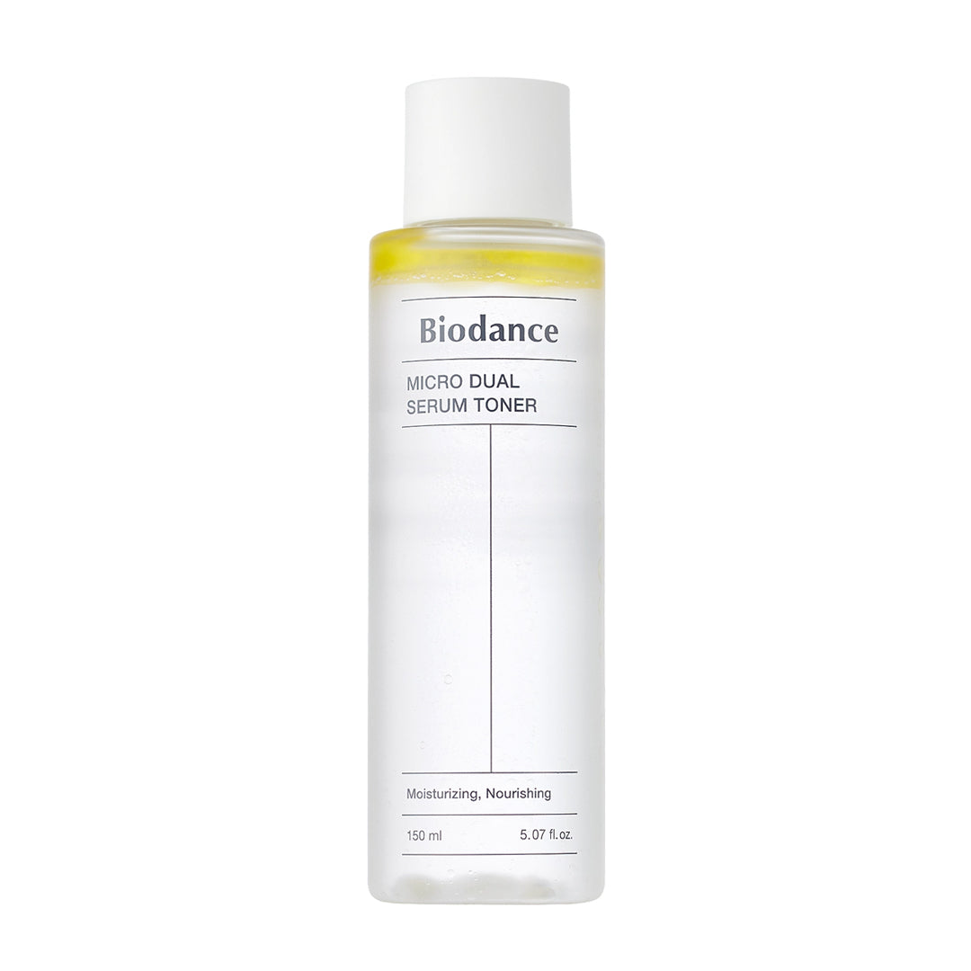Biodance Micro Dual Serum Toner - drėkinamasis veido tonikas, sukurtas odos drėkinimui, komforto jausmo atstatymui ir odos paruošimui tolimesnėms priežiūros priemonėms. Šis tonikas padeda palaikyti optimalią odos drėgmę, subalansuoja odos pH ir ruošia odą serumo bei kremo absorbcijai.