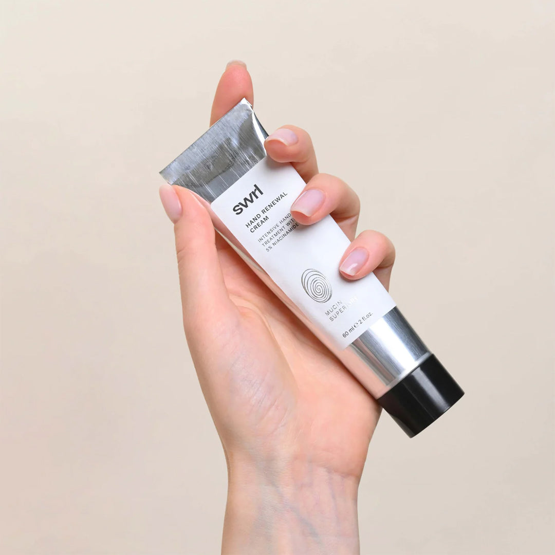 Niacinamidas sutvirtina barjerą ir mažina pigmentaciją, taukmedžio sviestas intensyviai maitina, o mucinas užpildo drėgme ir glotnina – todėl rankos tampa švelnios ir sudrėkintos.