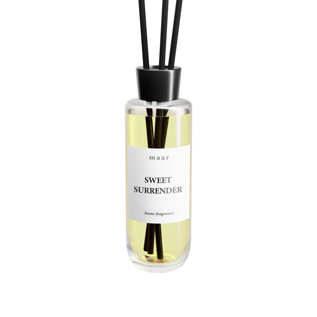 SWEET SURRENDER – nuo pirmųjų akimirkų apgaubia saldi slyvų, migdolų ir nerolio migla, kurią švelniai papildo rožės. Vėliau atsiskleidžia tabako, gintaro ir vanilės šiluma, paliekanti jausmingą ir ilgai išliekantį pėdsaką.