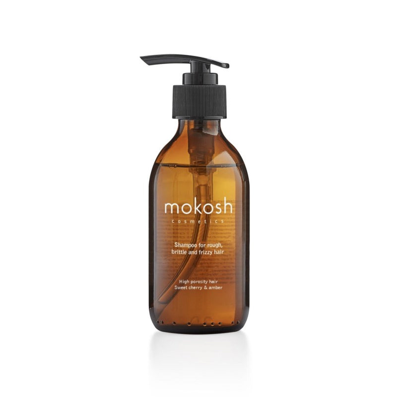 MOKOSH Sweet Cherry & Amber – šampūnas, skirtas šiurkštiems, lūžinėjantiems bei garbanotiems plaukams. Jis suteikia ilgalaikį drėkinimą, padeda regeneruoti plaukų pažeidimus ir grąžina natūralų blizgesį. Šampūnas palengvina šukavimą, stiprina plaukus ir padeda mažinti lūžinėjimą, todėl plaukai tampa švelnesni ir lengviau prižiūrimi. Po naudojimo plaukai atrodo glotnesni, minkštesni ir malonūs liesti, o garbanos - lengviau valdomos. Taip pat mažina plaukų elektrinimąsi ir nepageidaujamą pūtimąsi, todėl šukuosena išlieka tvarkinga visą dieną.