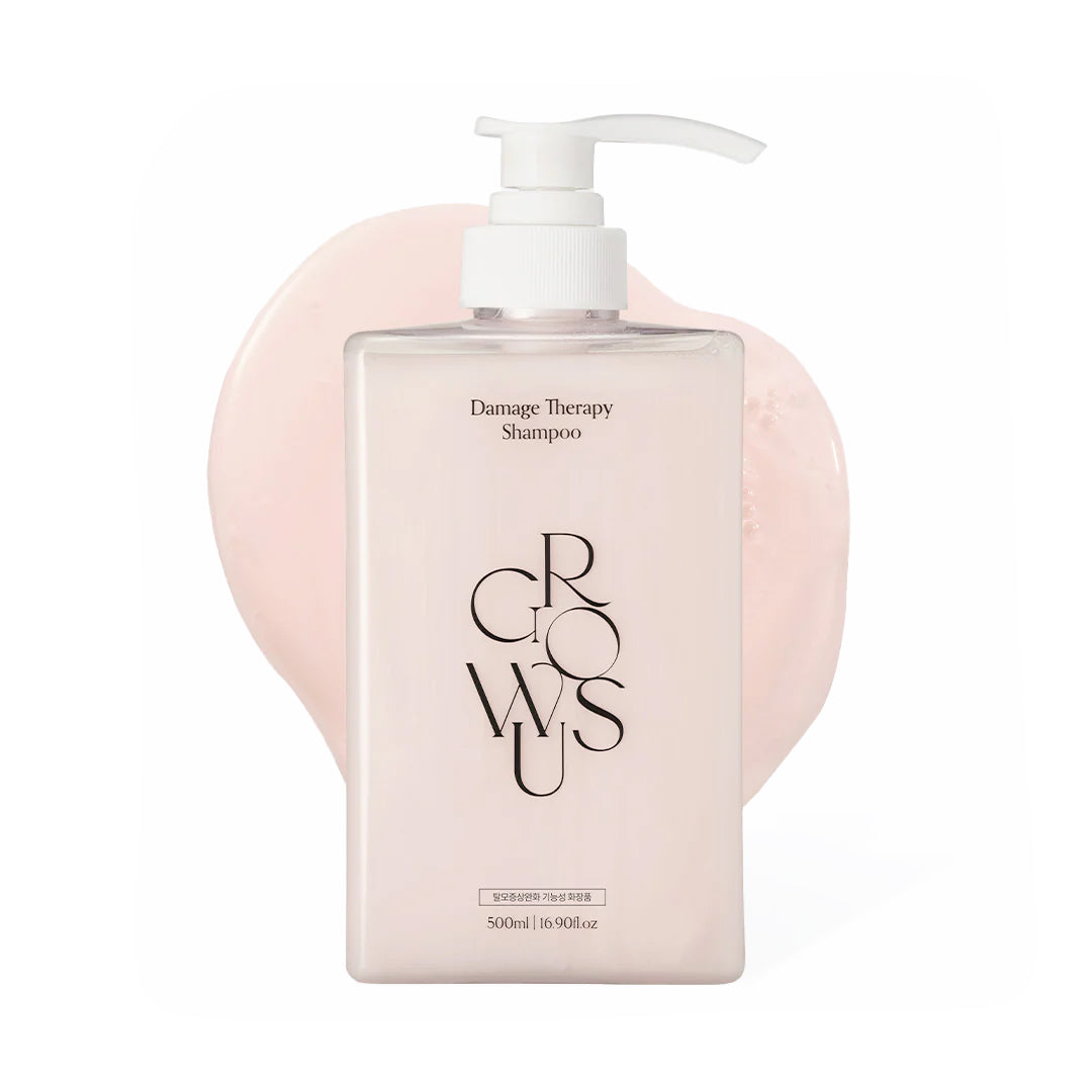 GROWUS Damage Therapy Shampoo - atkuriamasis šampūnas, skirtas pažeistiems, sausiems ir nusilpusiems plaukams. Jo sudėtyje esantis 7 rūšių kolagenų ir 5 rūšių baltymų kompleksas padeda stiprinti plaukus iš vidaus, atkurti jų elastingumą ir suteikti sveikesnę išvaizdą.