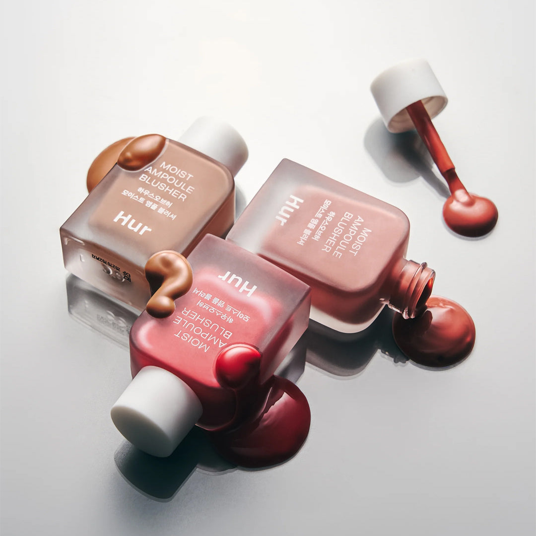 House of Hur Moist Ampoule Blusher - lengvos tekstūros, ilgai išliekantys skysti skaistalai, suteikiantys natūralų ir gaivų švytėjimą. Unikalūs atspalviai tinka įvairiems odos tonams ir lengvai susilieja su oda, išryškindami natūralų grožį bei suteikdami sveiko spindesio efektą.