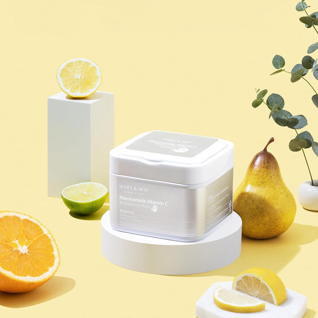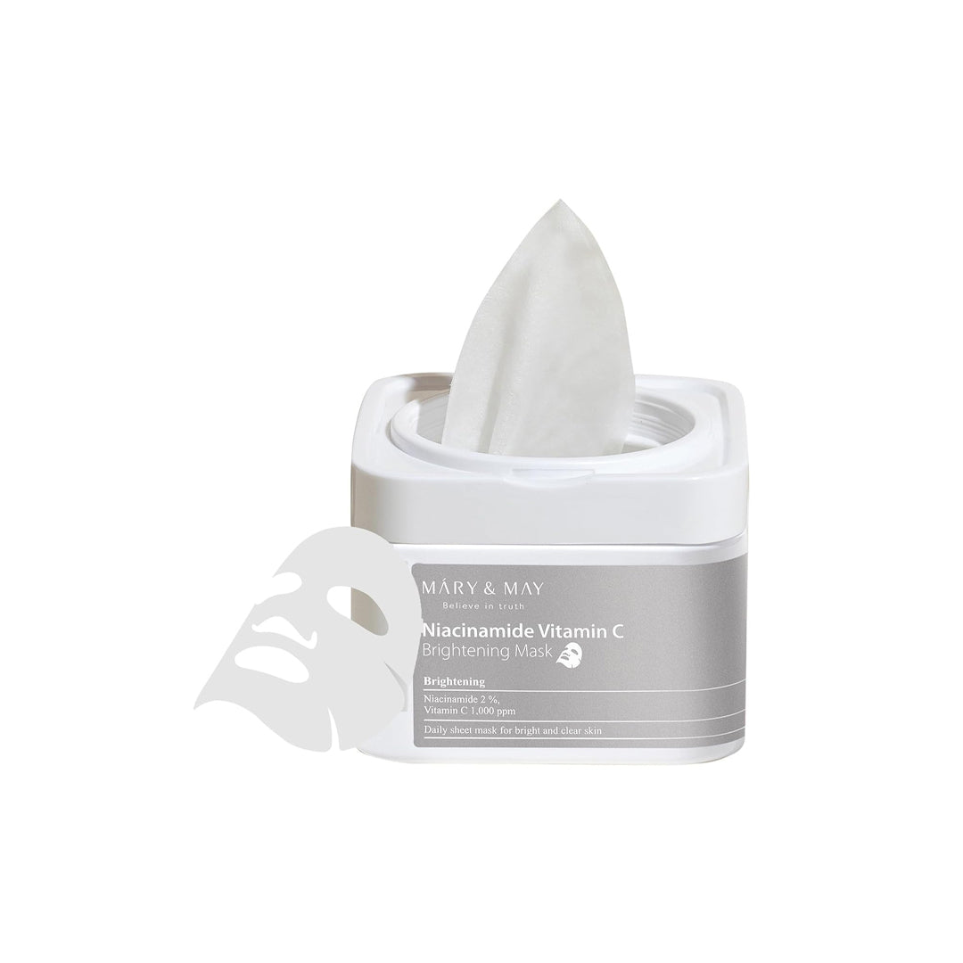 Mary&May – Niacinamide Vitamin C Brightening Mask – tai šviesinamojo poveikio veido kaukių rinkinys, sukurtas odai su pigmentinėmis dėmėmis, netolygiu atspalviu ir pirmaisiais senėjimo požymiais. Rinkinyje yra 30 vienkartinių kaukių, kurios padeda atgaivinti, sudrėkinti ir suteikti odai skaistumo.