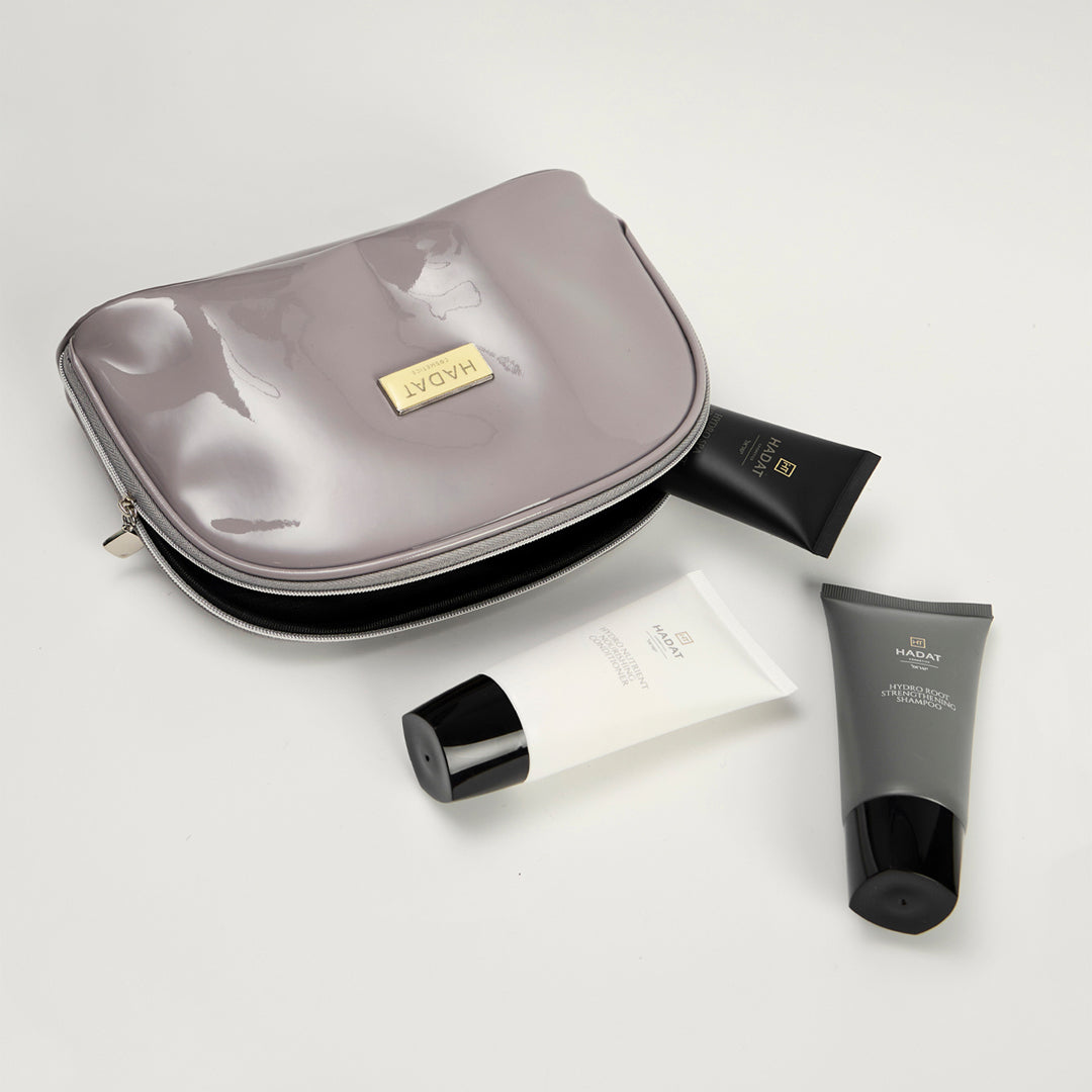 - Hadat Cosmetics Bag – elegantiškas firminis kosmetinis krepšelis, tobulas kelionėms.