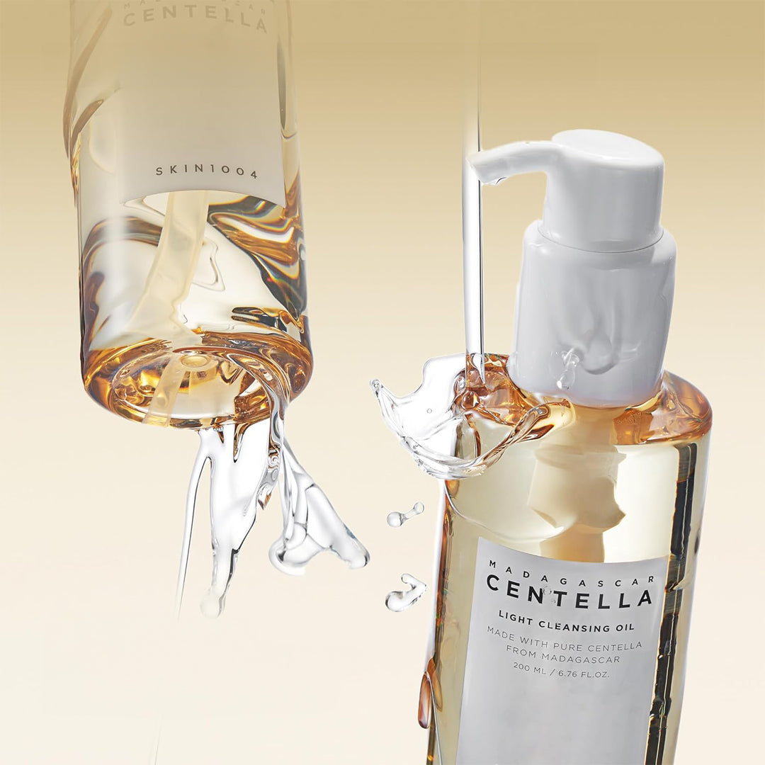 SKIN1004 Centella Light Cleansing Oil – itin lengvas, vandeningos tekstūros valomasis aliejus, kuris tirpdo makiažą, nešvarumus, SPF ir riebalų perteklių, nepažeisdamas odos barjero. Sudėtyje – Centella Asiatica aliejus (išgautas MCT metodu) ir 6 augaliniai aliejai, kurie švelniai valo, ramina bei drėkina odą.