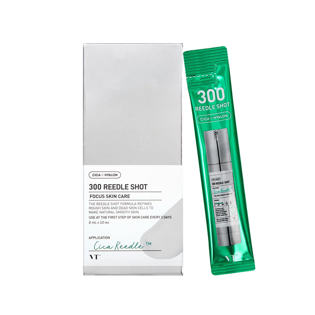 VT Cosmetics 300 Reedle Shot  – tai intensyvaus poveikio odos priežiūros priemonė, kuri prasiskverbia į giliuosius odos sluoksnius, užtikrindama veikliųjų medžiagų maksimalų įsisavinimą ir efektyvumą. Produktas naudoja natūralios kilmės mikroadatėlių formos ingredientus, kurie padeda pagerinti odos būklę, glotnumą ir elastingumą.