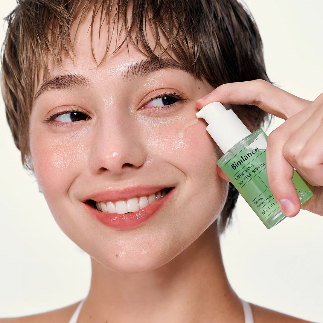 BIODANCE Refreshing Sea Kelp Serum – tai raminantis ir odos balansą atkuriantis serumas, skirtas probleminei ir į bėrimus linkusiai odai. Jis padeda sumažinti spuogų atsiradimą, ramina sudirgusią odą ir yra pakankamai švelnus kasdieniam naudojimui.