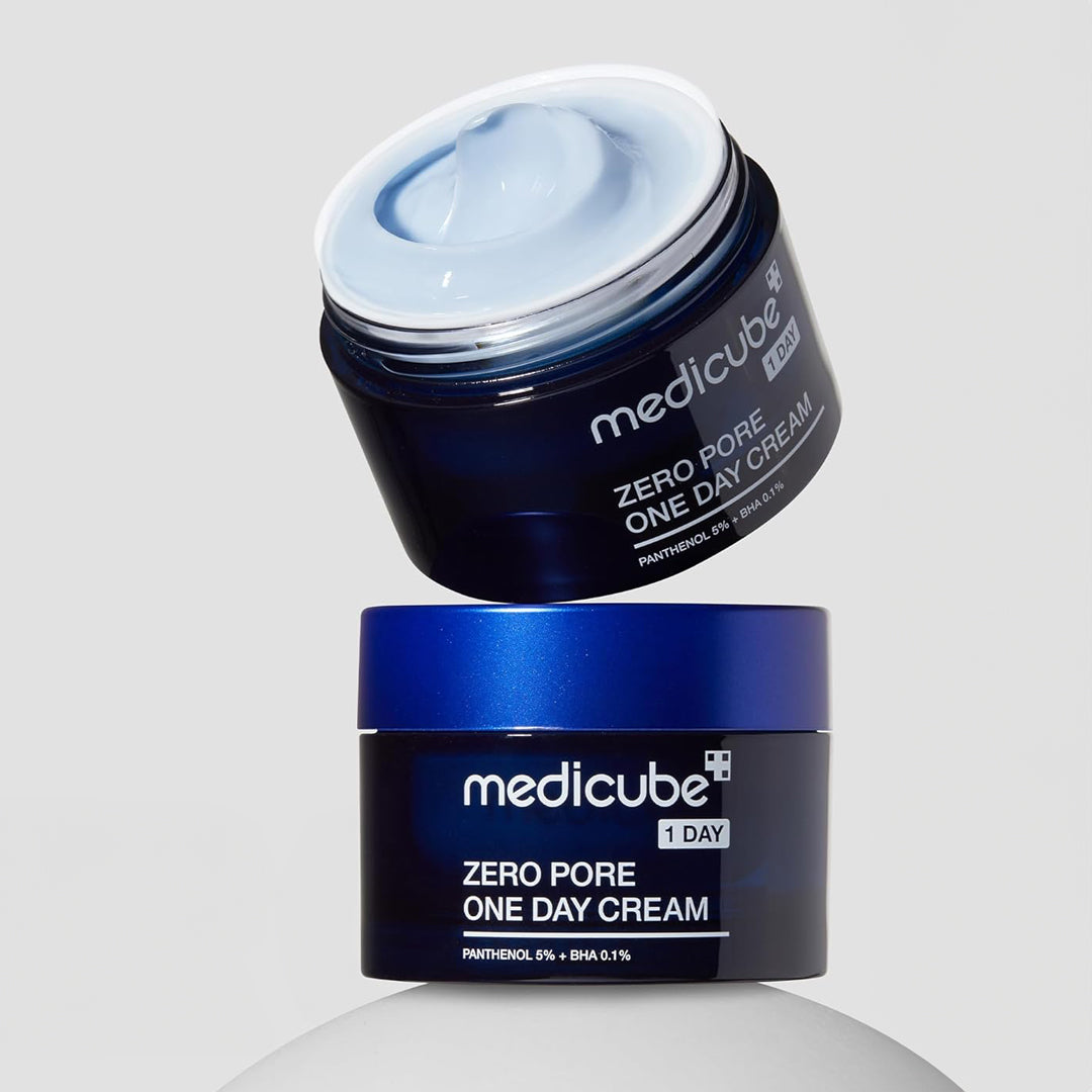 Medicube Zero Pore One-Day Cream – tai lengvos tekstūros, tačiau galingos sudėties drėkinamasis kremas, skirtas tiems, kurie nori atsisveikinti su išsiplėtusiomis poromis, inkštirais ir riebiu blizgesiu.